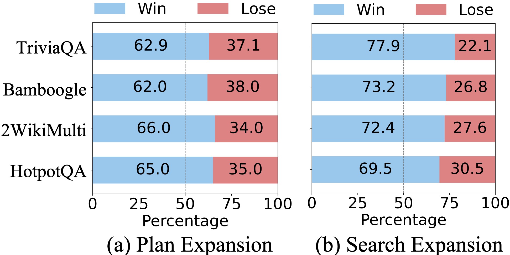 Ablation Study We analyze the effectiveness of planning expansion and searching expansion by removing these components and observing the resulting performance changes.
